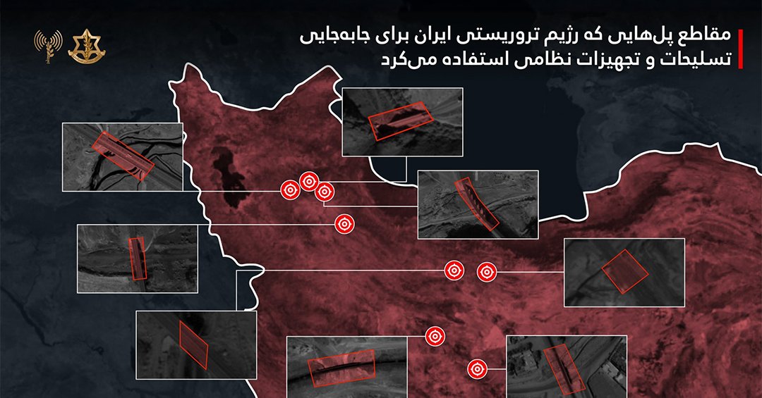 צה"ל הודיע כי תקף שמונה נקודות — גשרים וכבישים — שבהן השתמשה הרפובליקה האסלאמית להעברת נשק וציוד צבאי. בהודעה נכתב שהציוד שימש בפעולות נגד ישראל ומדינות נוספות במזרח התיכון.